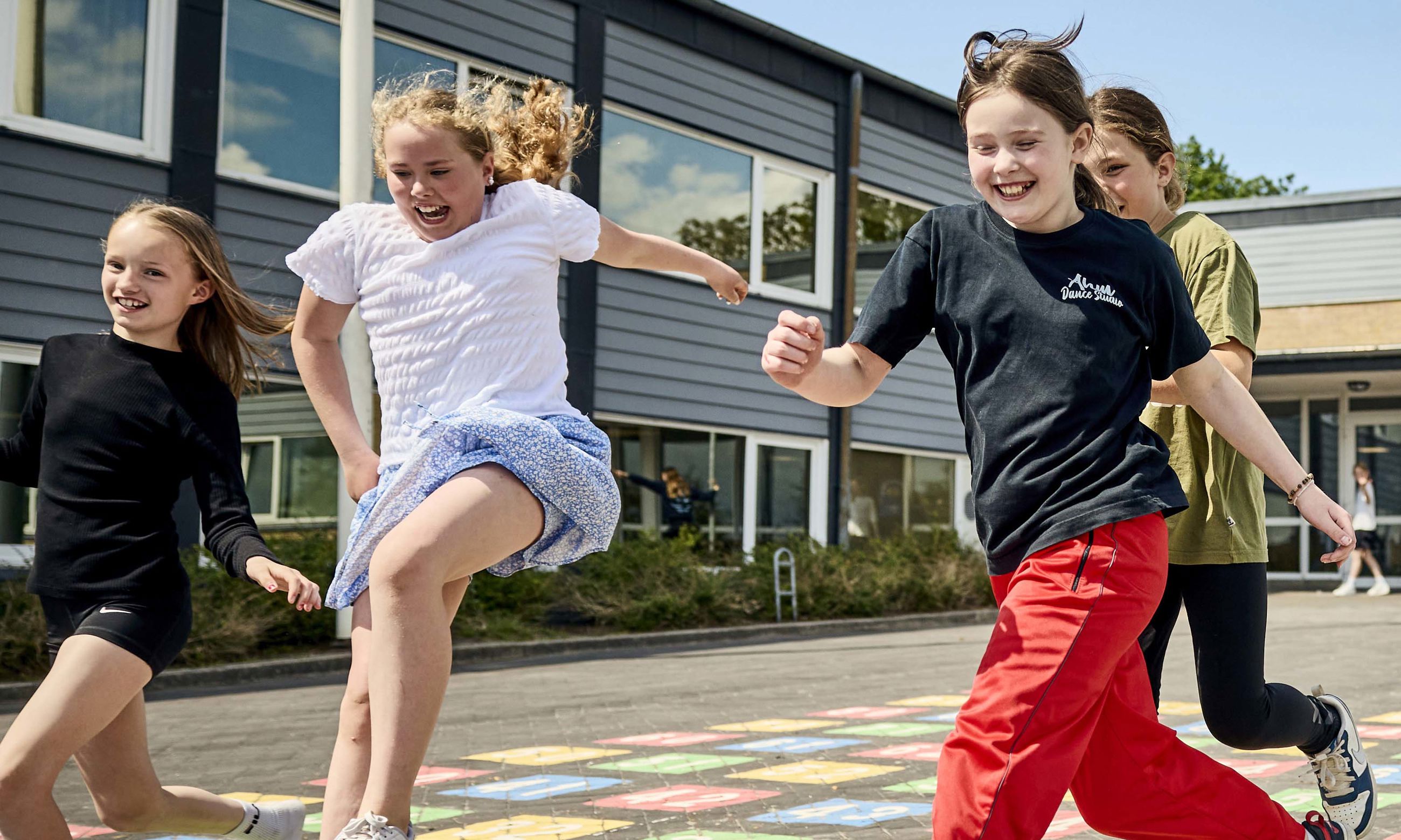 Piger leger i skolegård