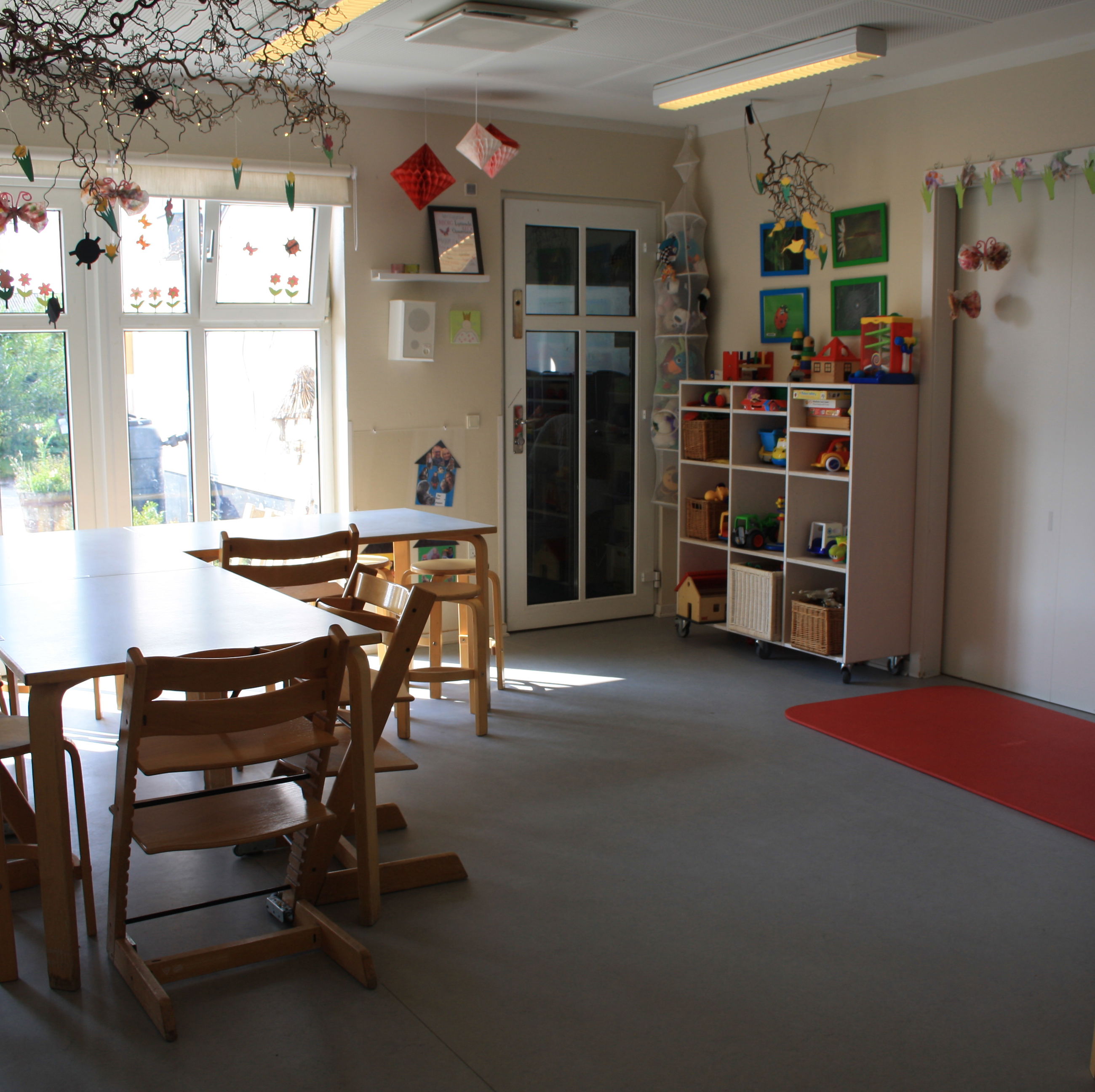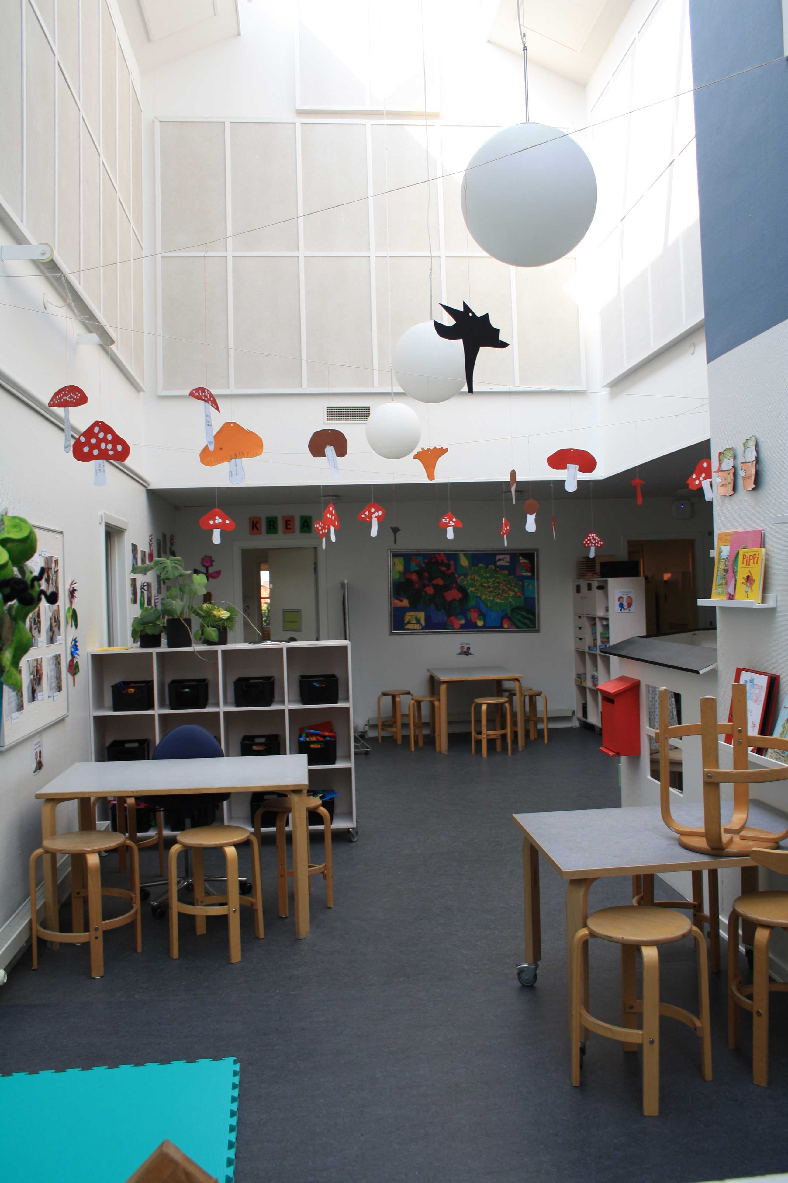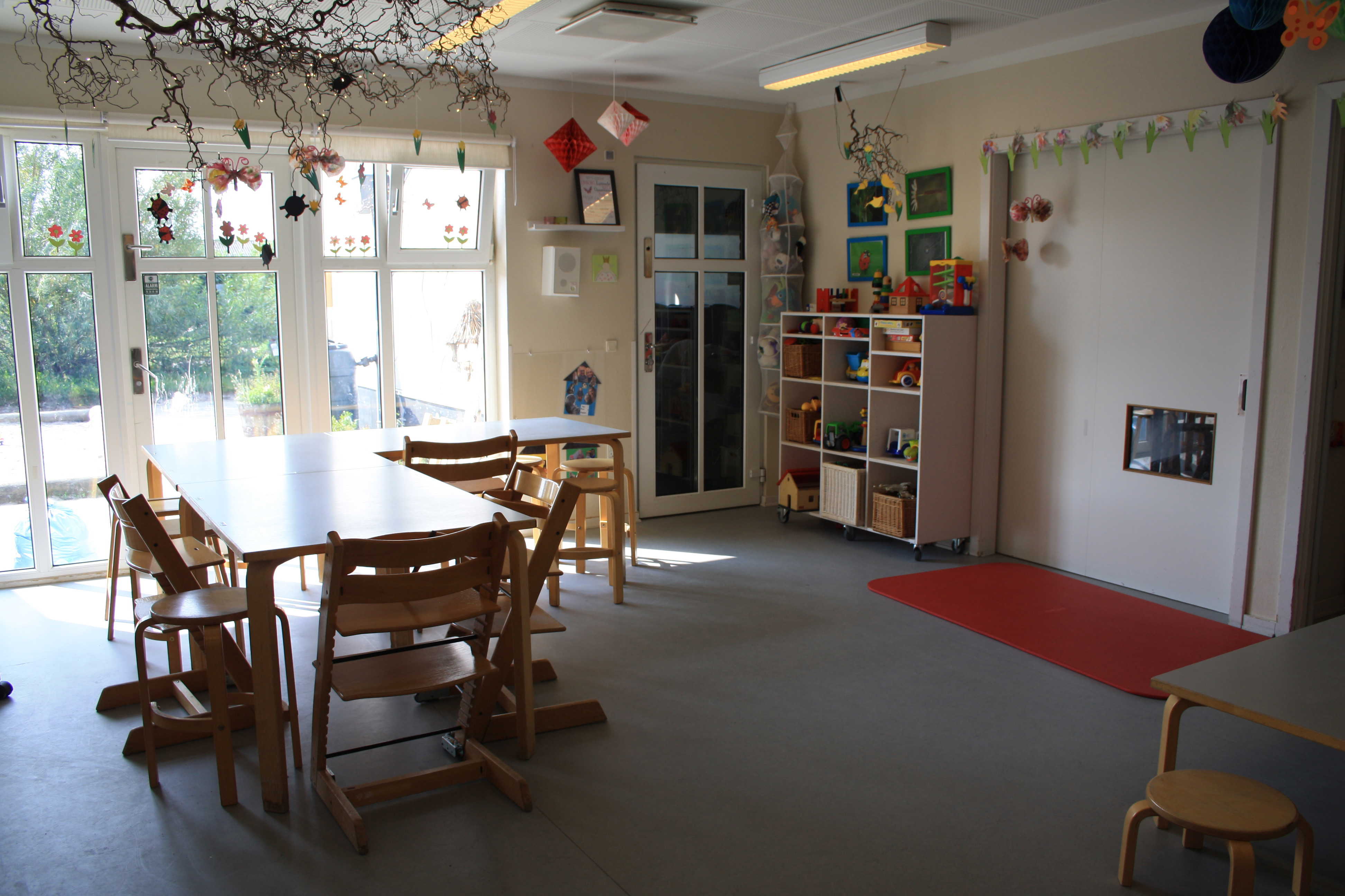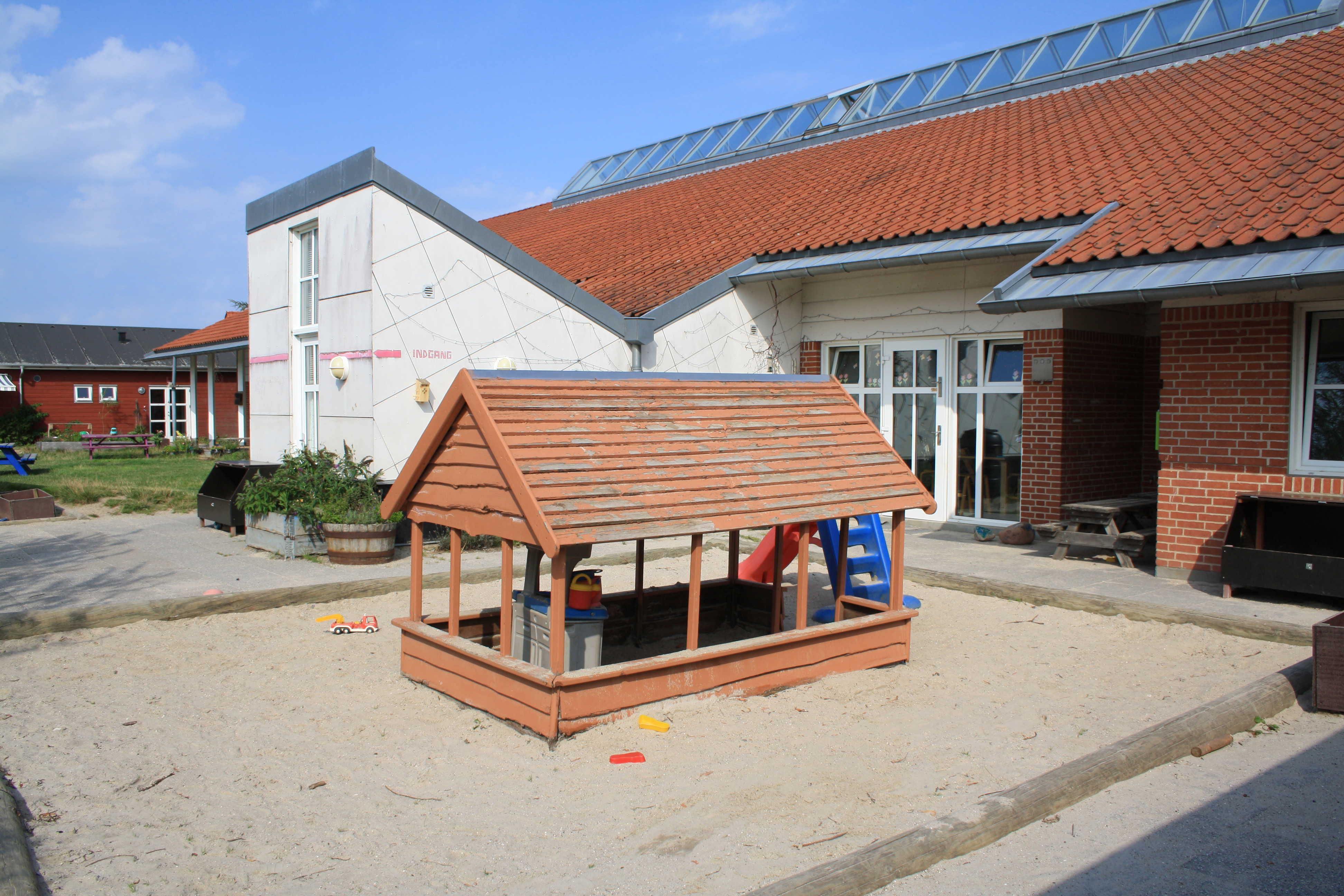 Børnehaven og vuggestuen deler hus, mens gruppen med børn med særlige behov er i en dejlig tilbygning på legepladsen.