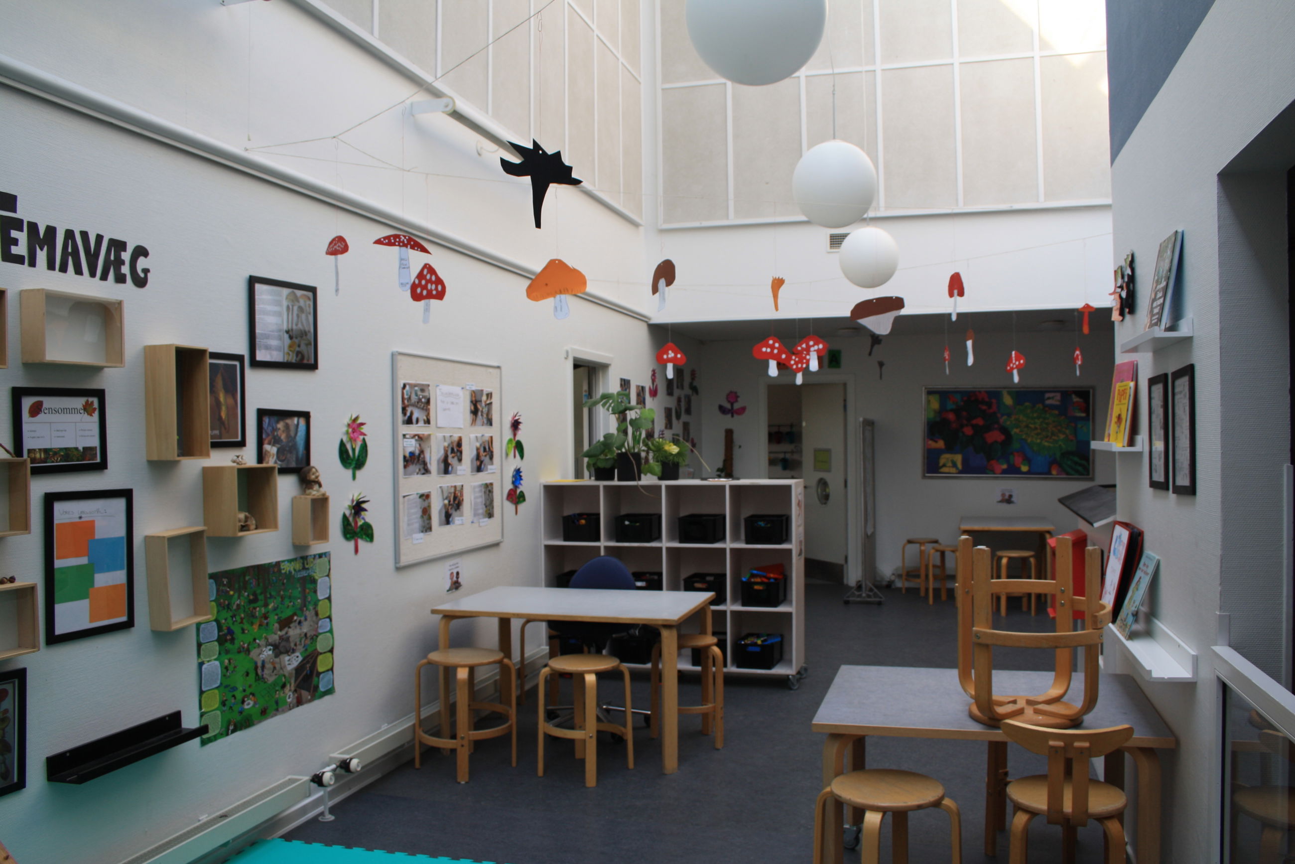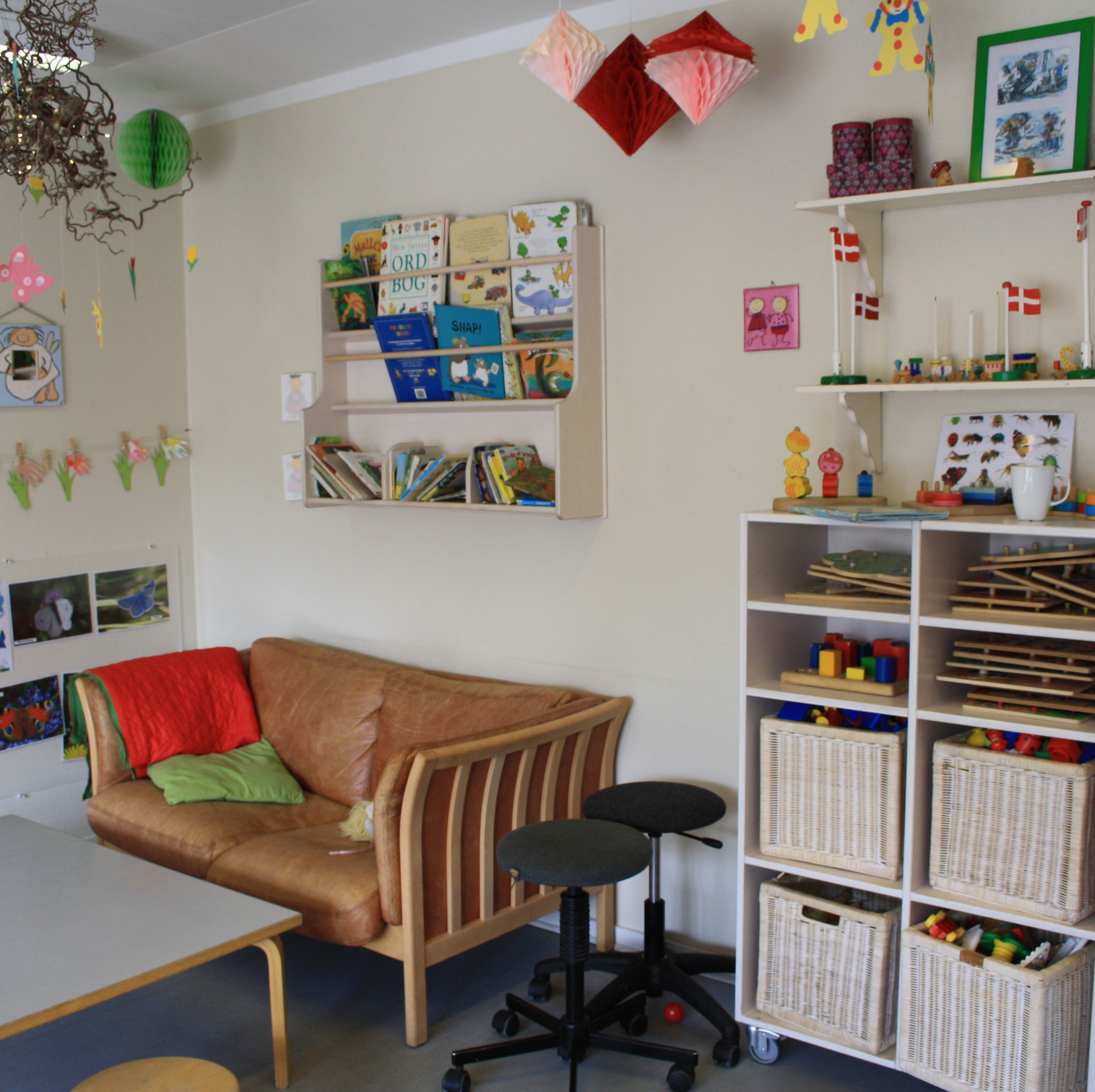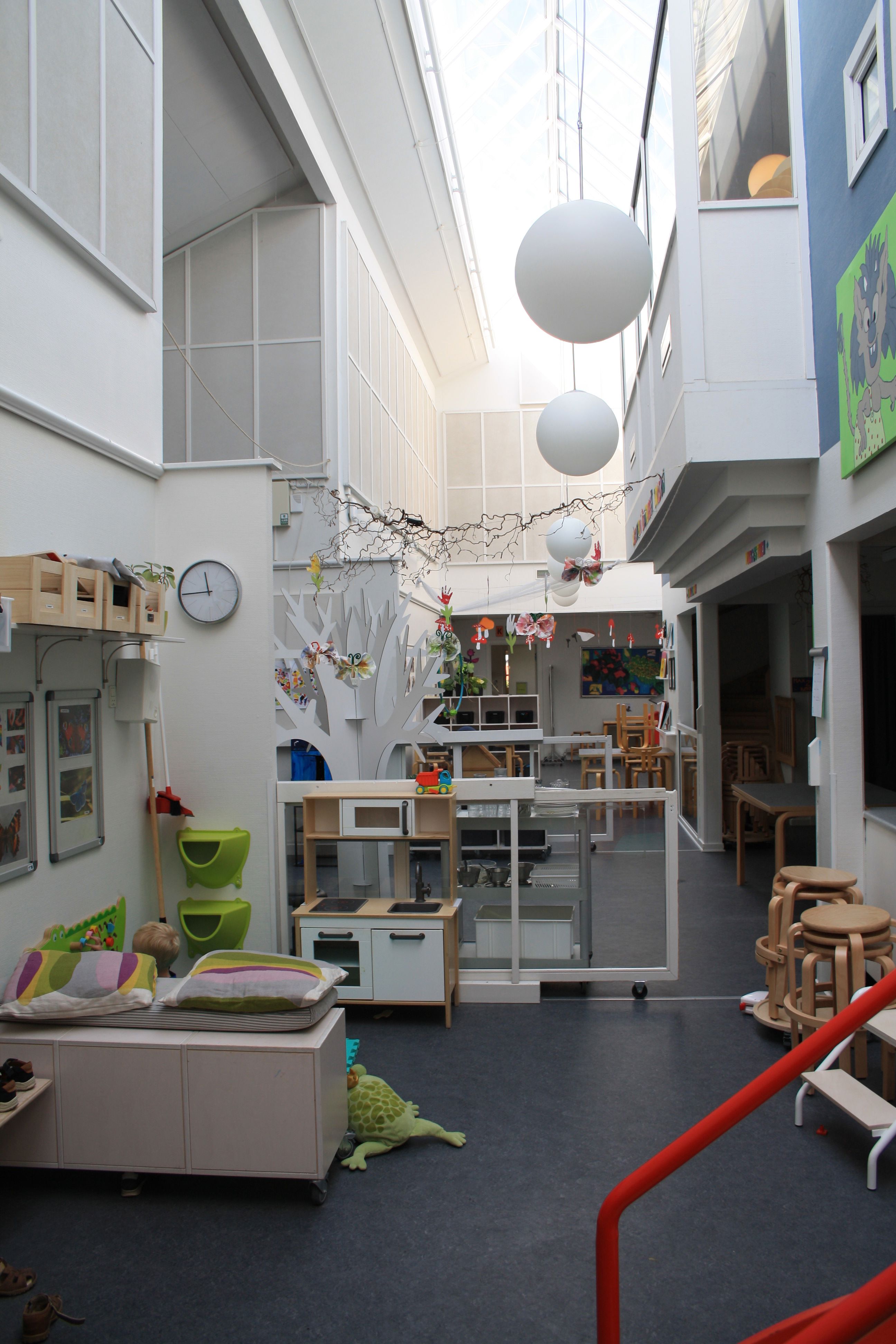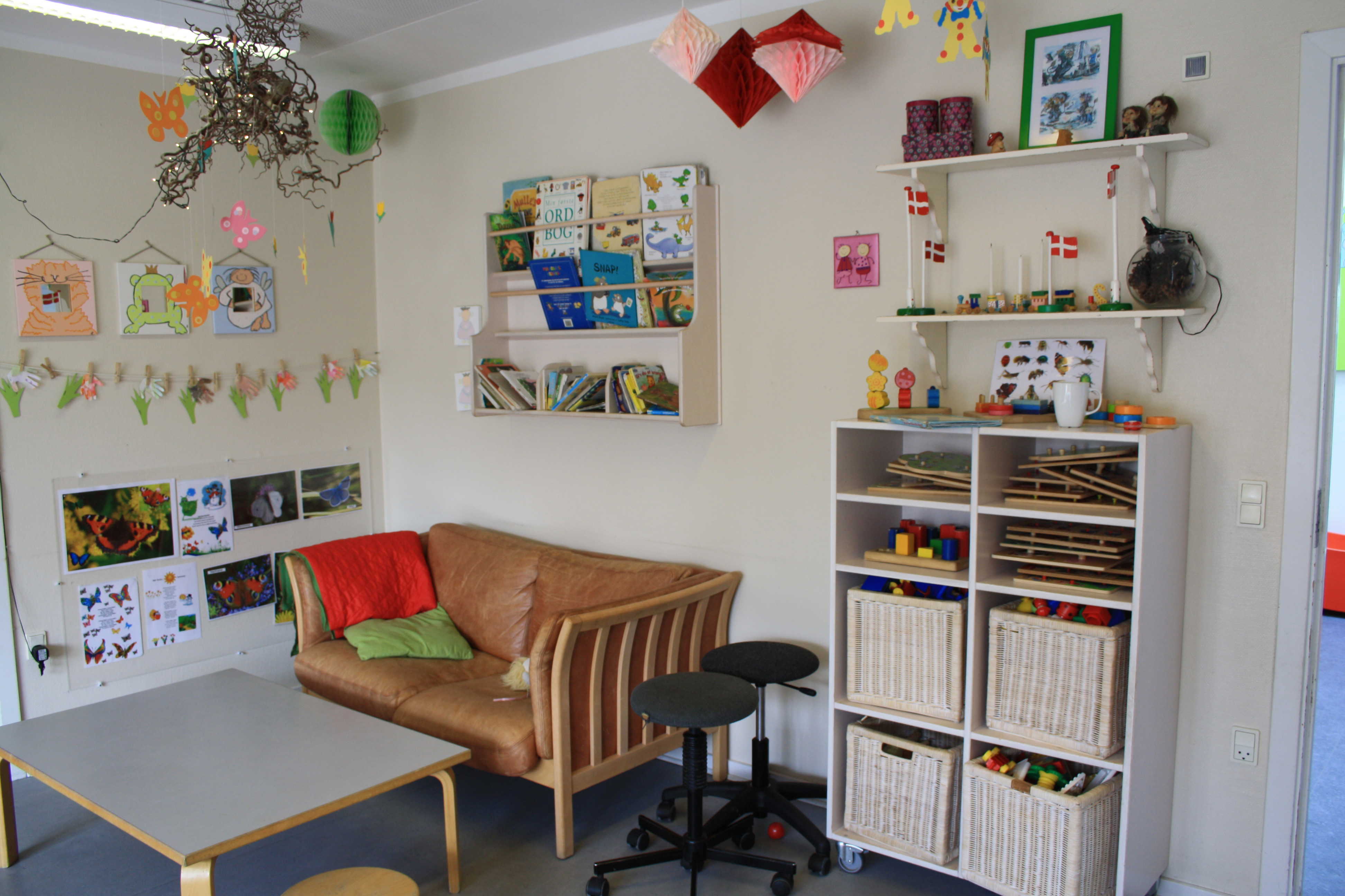 Børnehaven og vuggestuen deler hus, mens gruppen med børn med særlige behov er i en dejlig tilbygning på legepladsen.