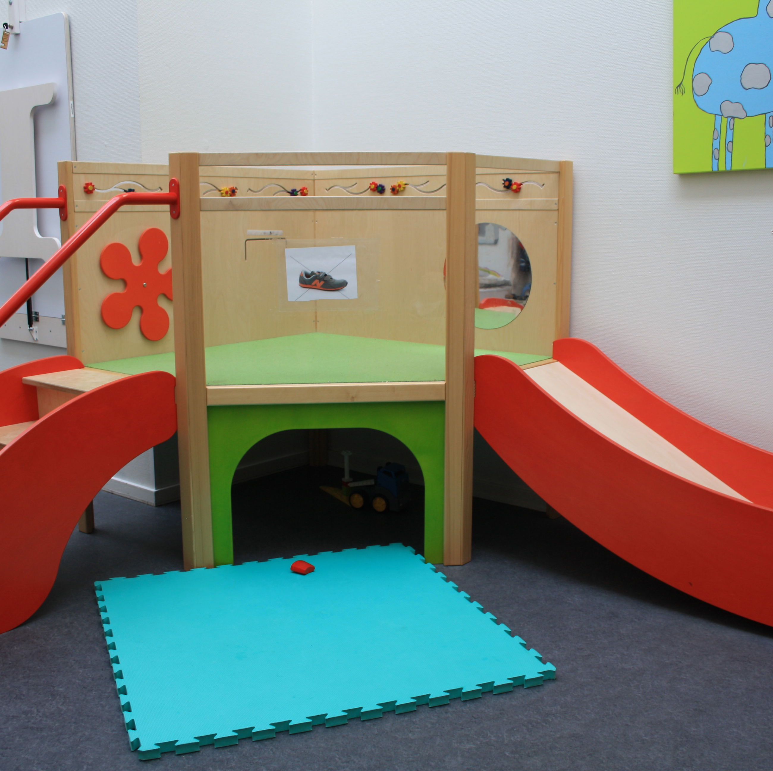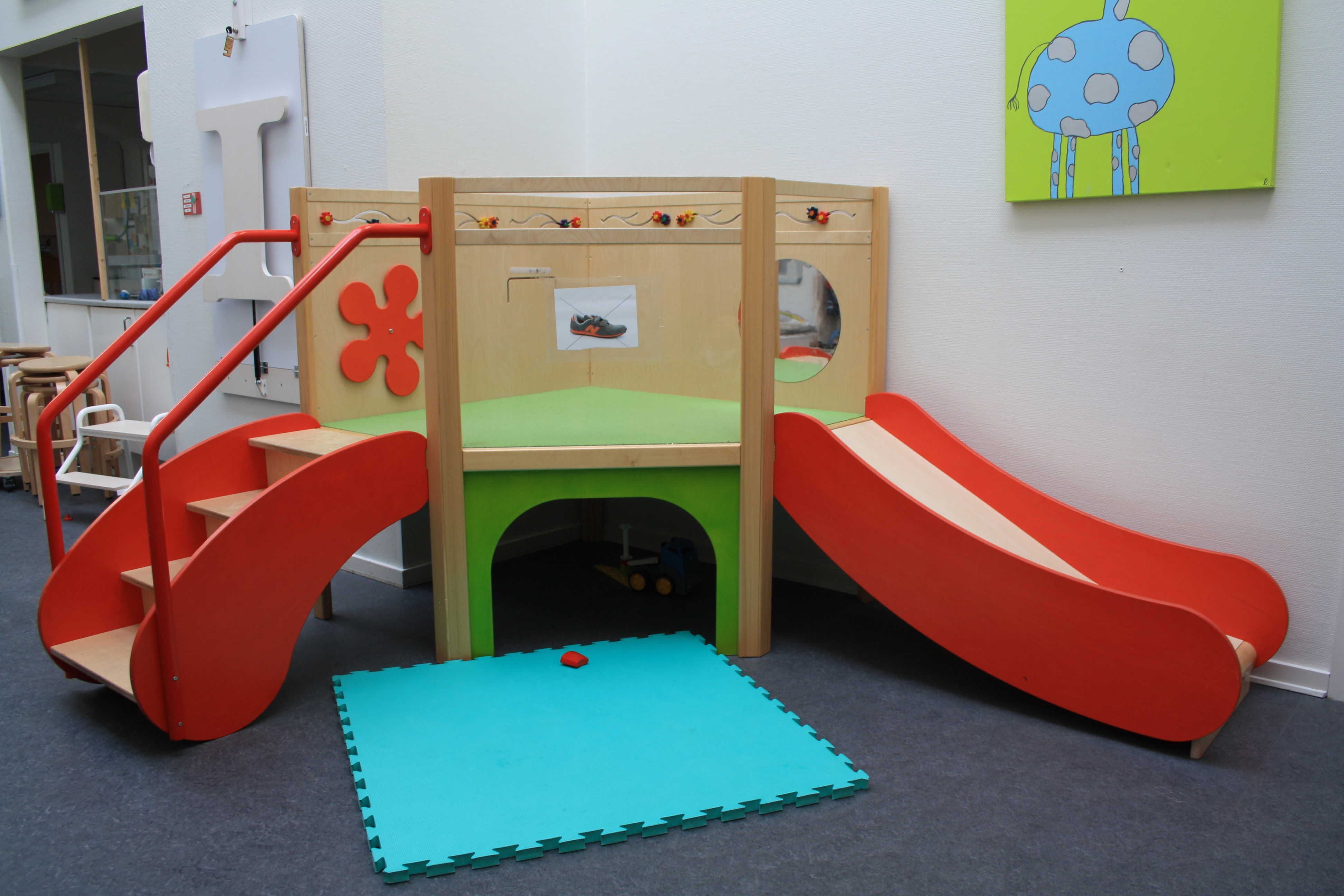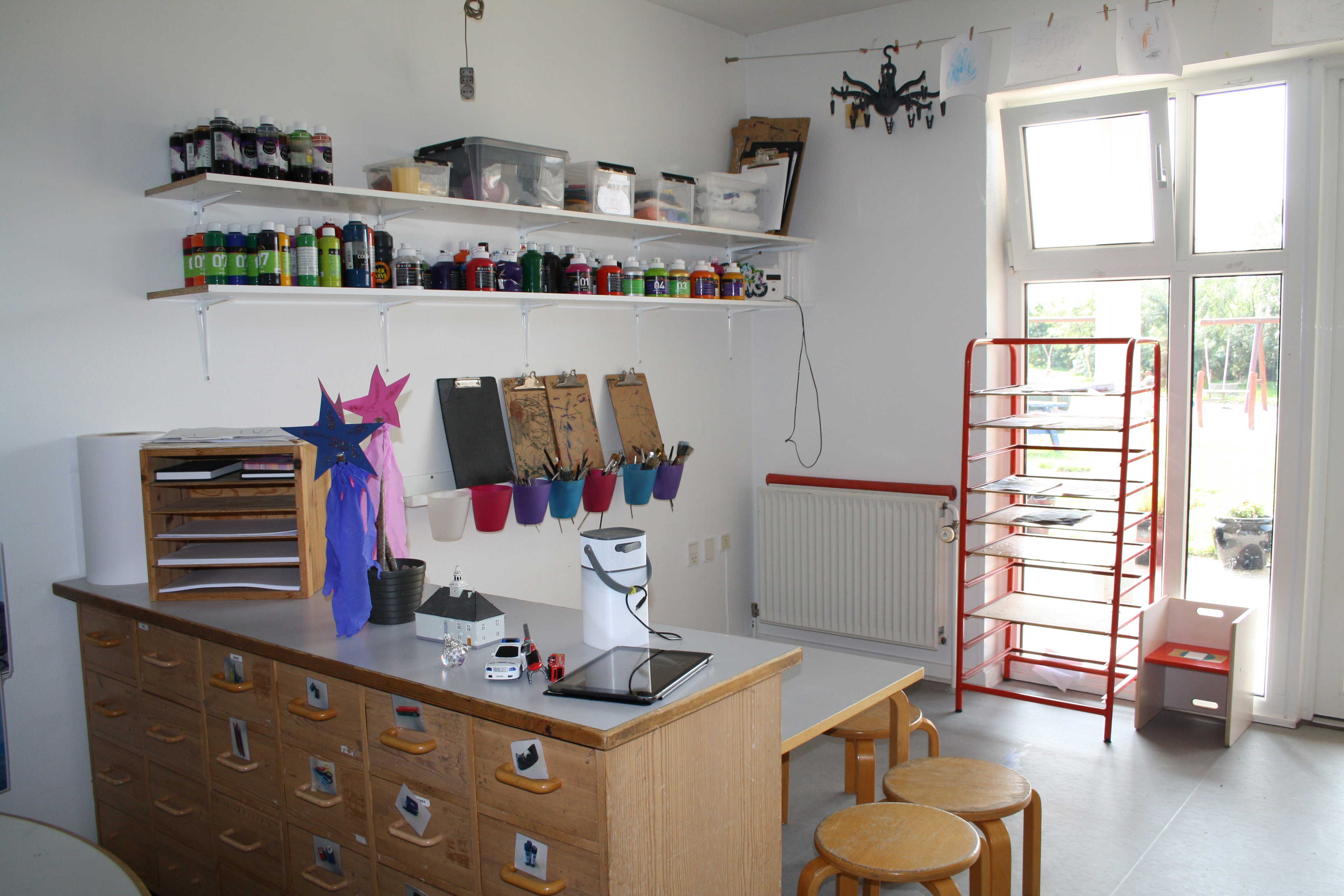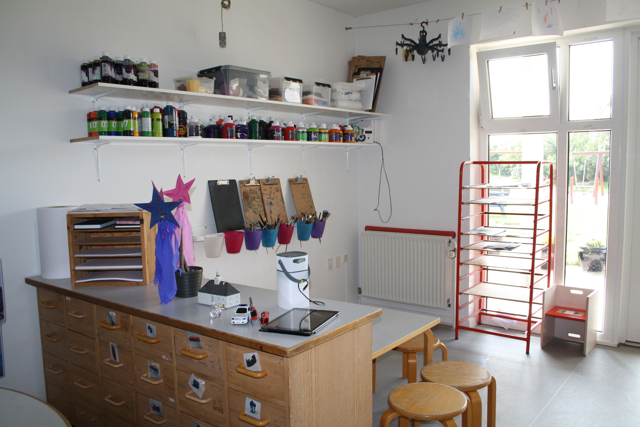 Børnehaven og vuggestuen deler hus, mens gruppen med børn med særlige behov er i en dejlig tilbygning på legepladsen.