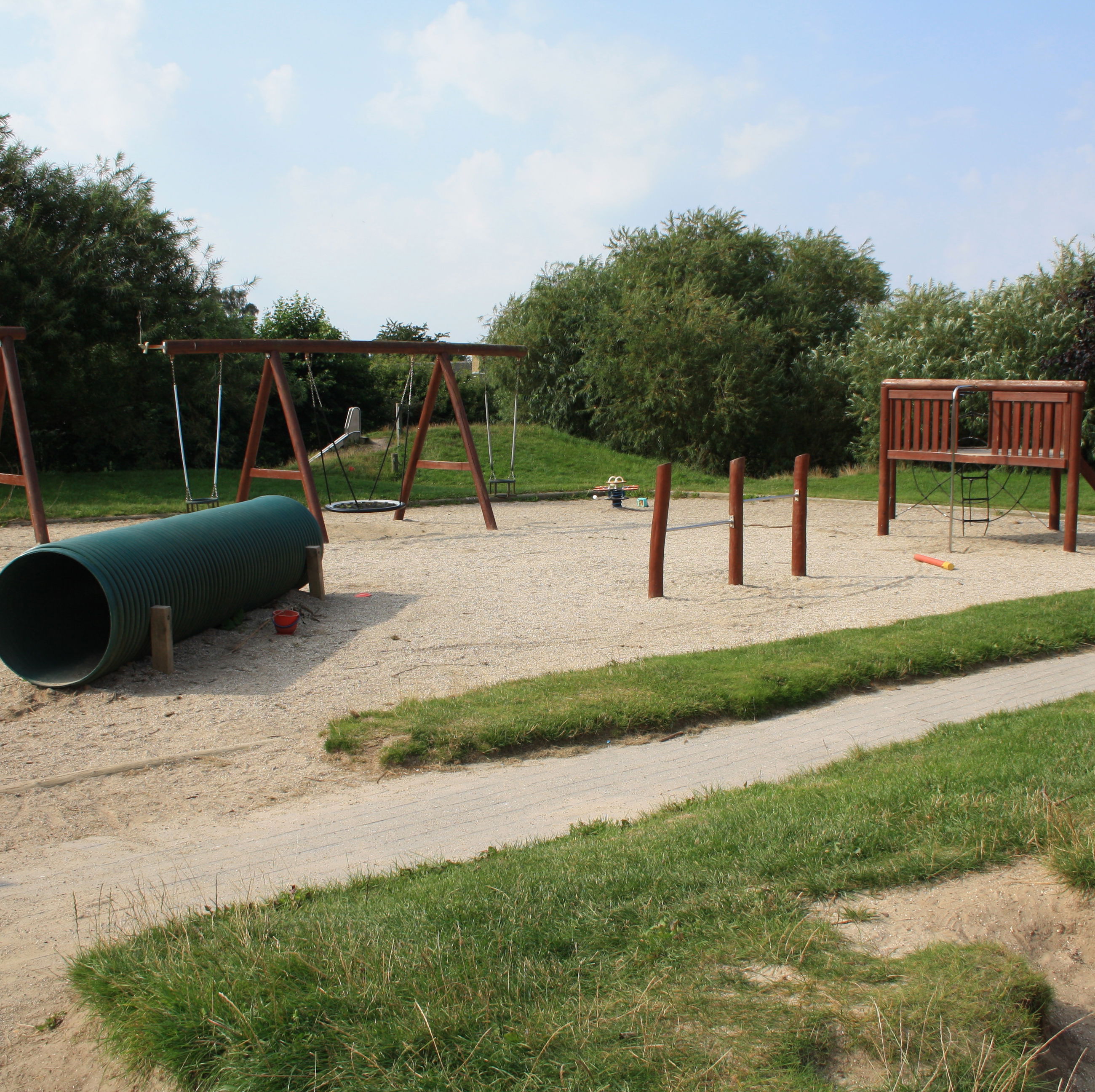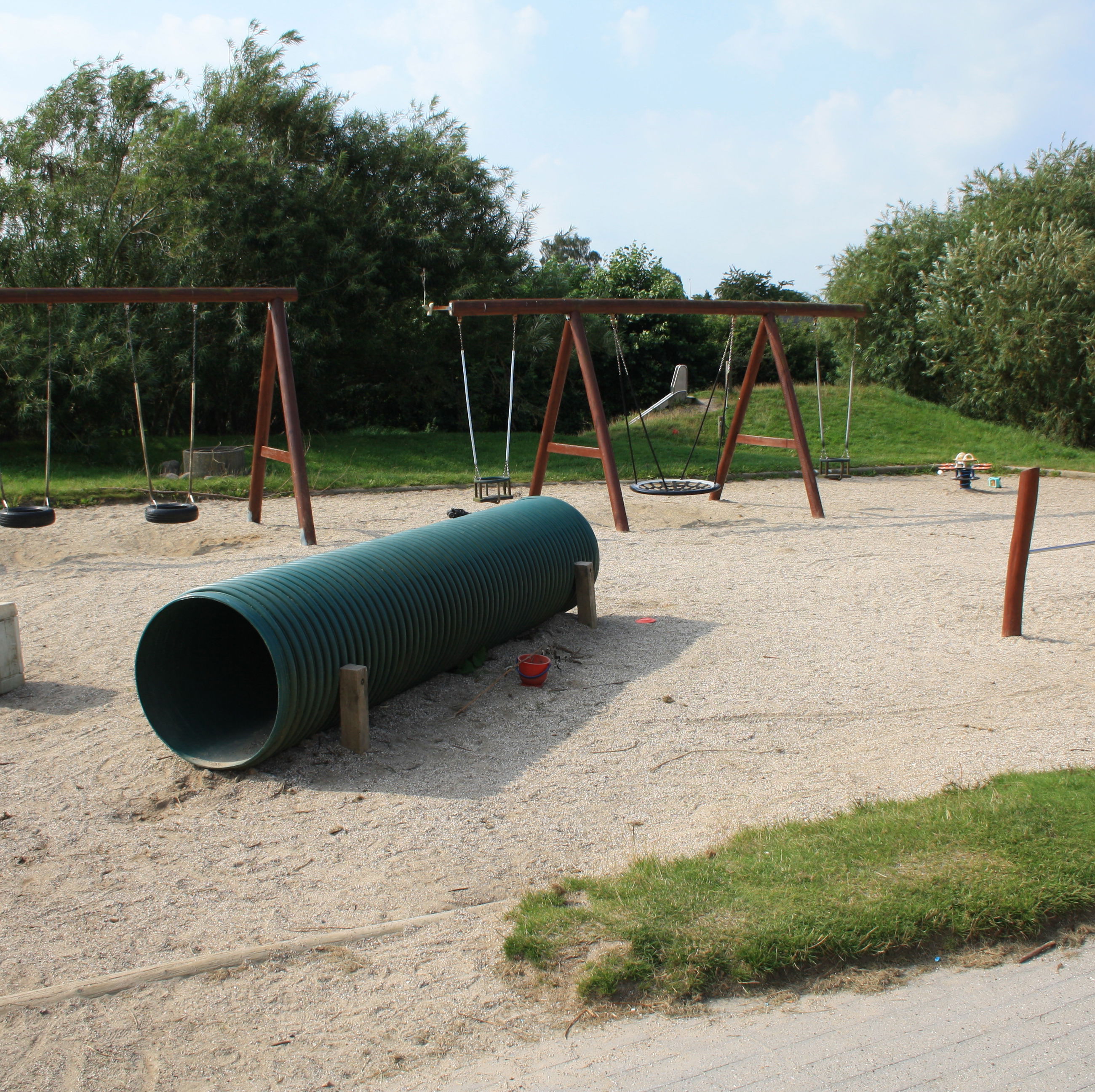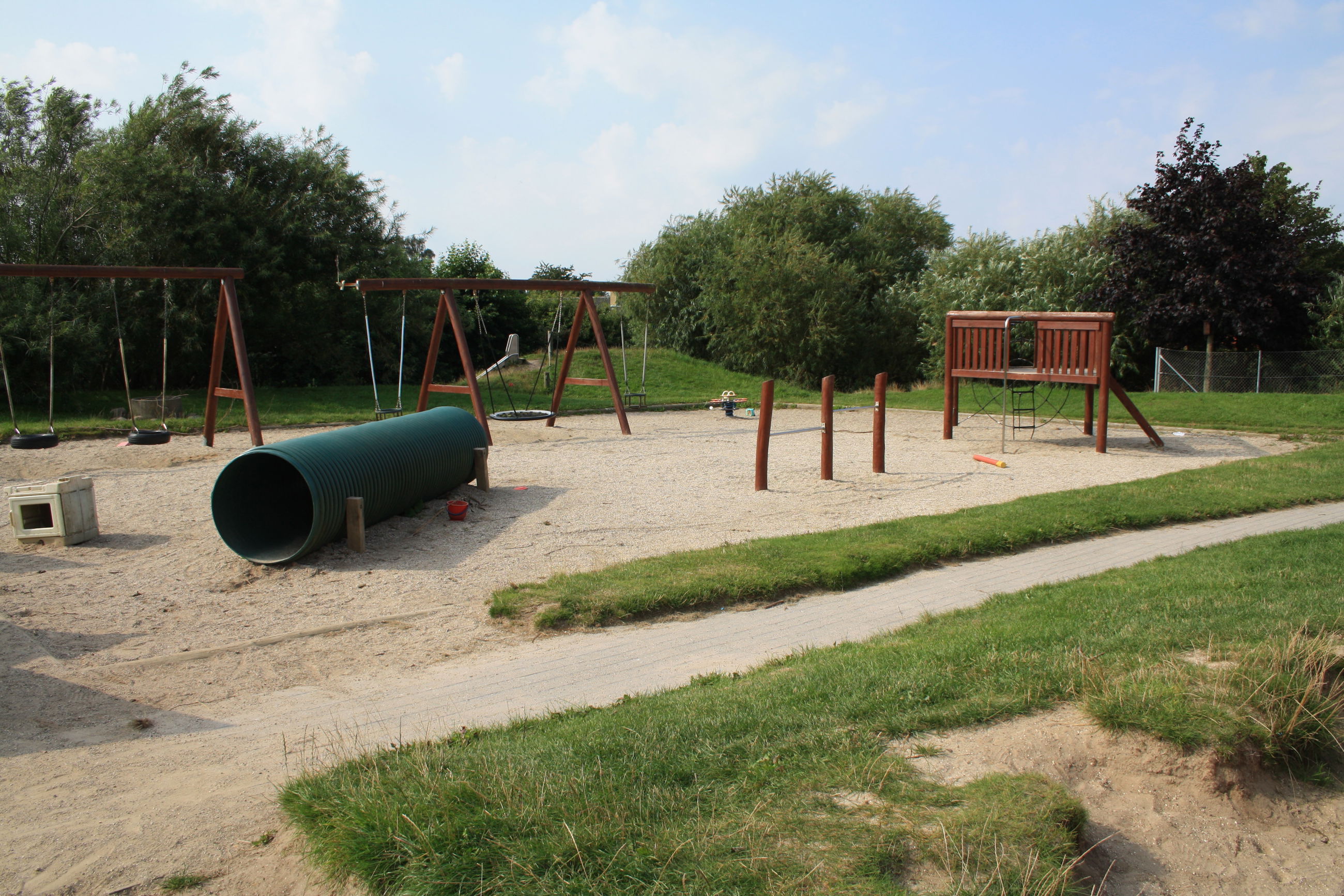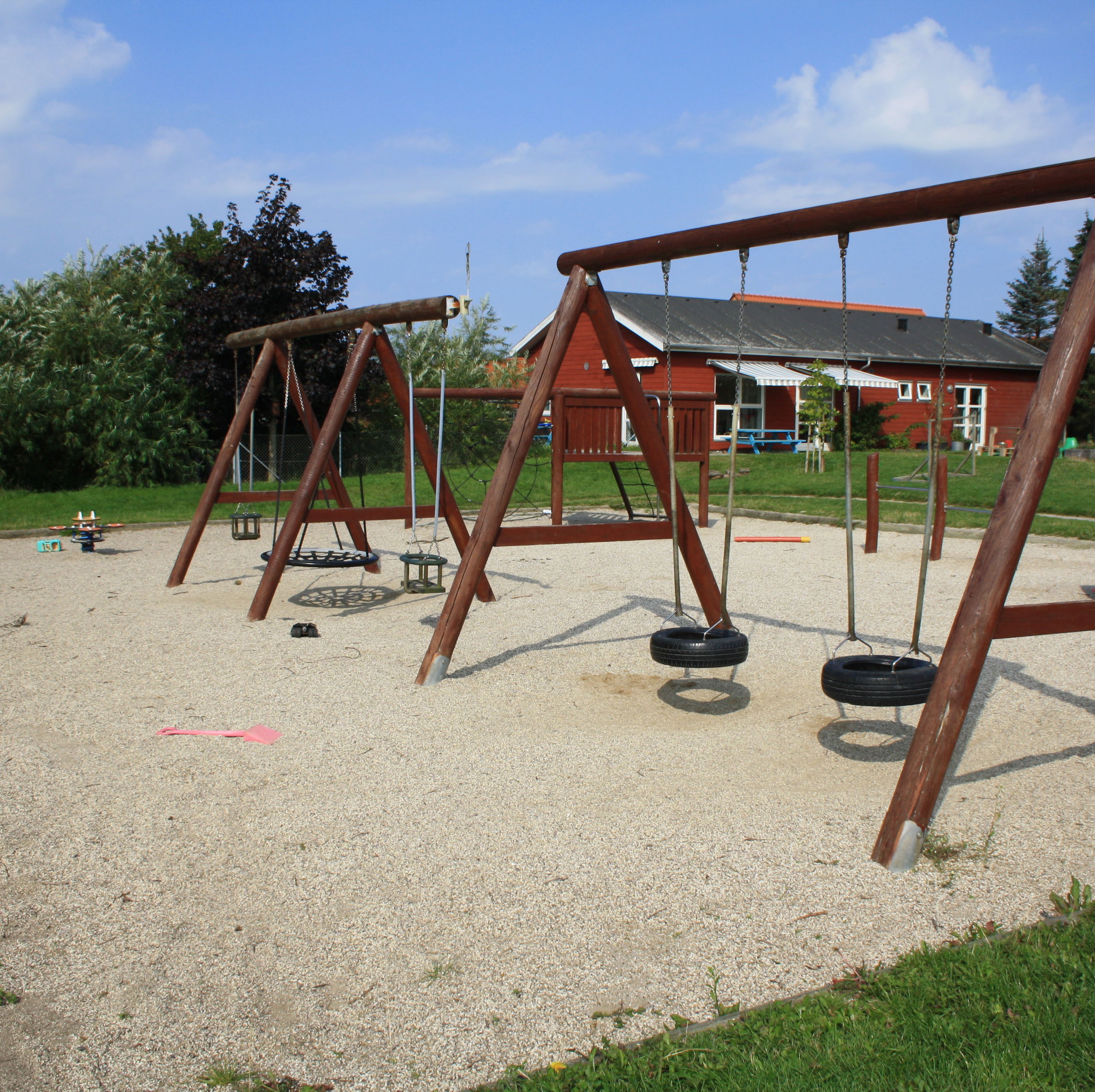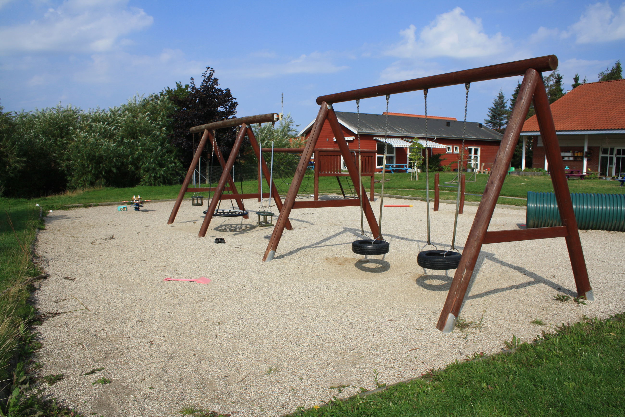 Vi har en stor legeplads.